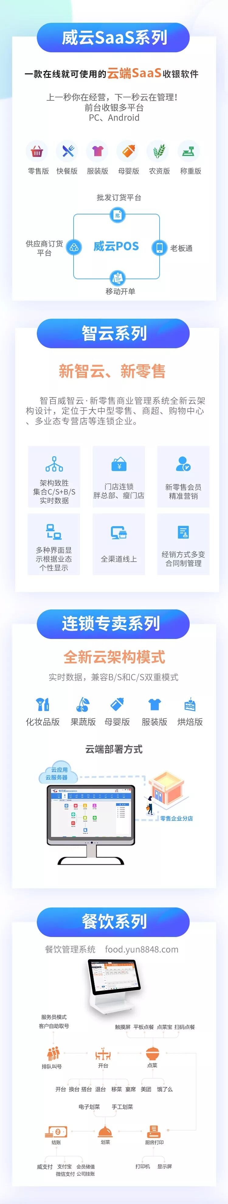 据了解,在社会各界尤其是广大用户以及代理商的支持下,智百威发展迅猛,聚集了一批既精通计算机技术又具有丰富管理经验的专业人才,凭借多年的商业理论研究和丰富的行业实践为基础,结合国内商业零售企业的实际需要,利用最先进的计算机软硬件技术,开发出了拥有自主知识产权的智百威系列软件产品-商业流通、连锁专卖、餐饮娱乐、威云SaaS、O2O互联网平台等系列软件。